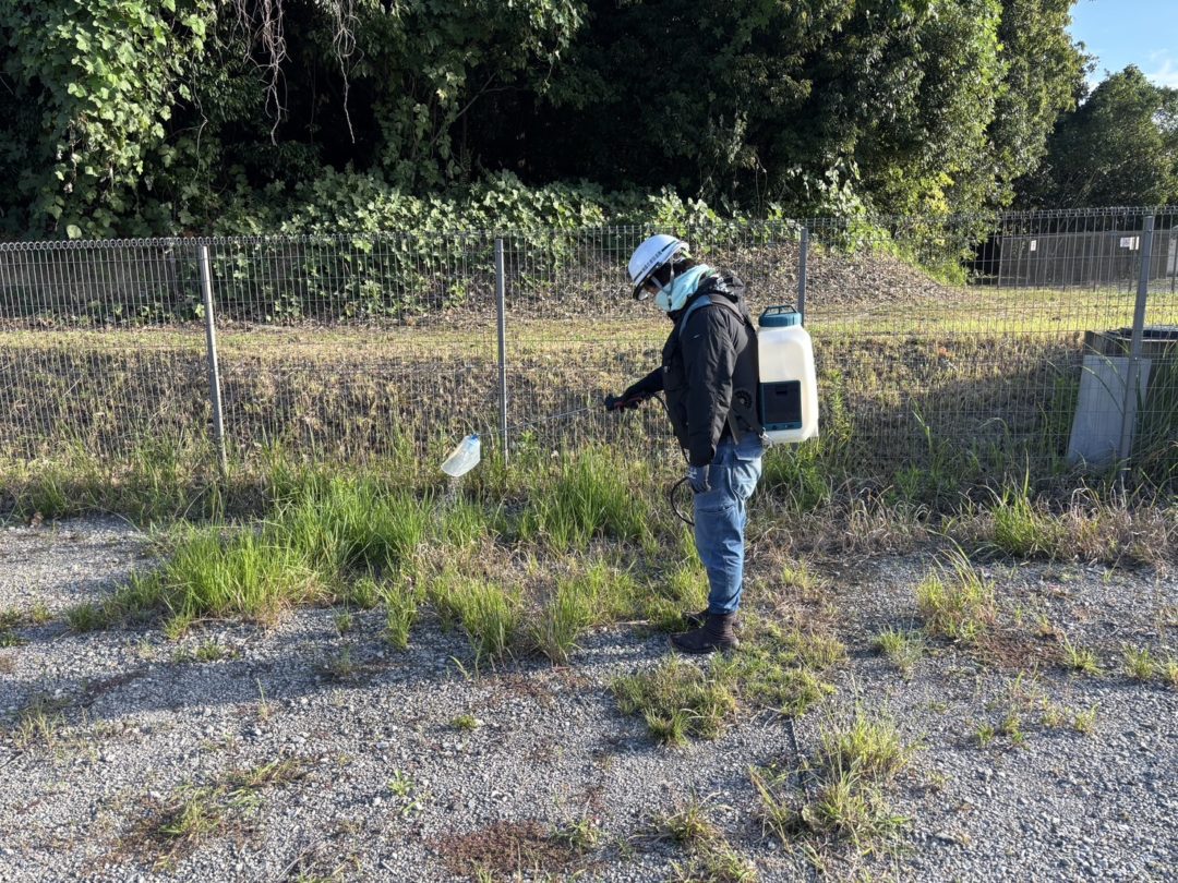 ここ最近の雨で一気に草が伸びてきていたので、除草剤を散布して欲しいと依頼があり行いました。