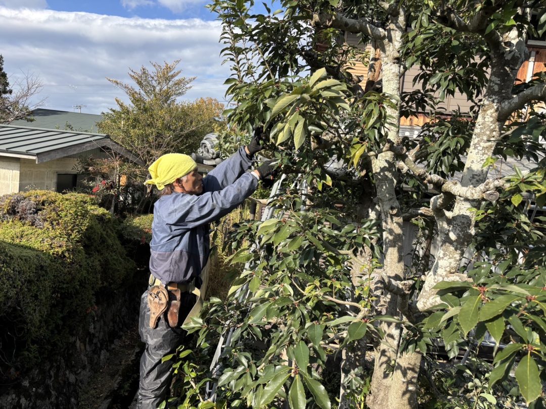 個人邸の剪定 2025年11月29日 年末に向けて個人邸の剪定に入らせて頂いています。 カシの木を剪定しているのですが、去年も同じ位切ったのに毎年よく伸びるな~と感心しています。 また来年も剪定できるよう、元気に伸びますように。 スタッフ 西野 圭悟