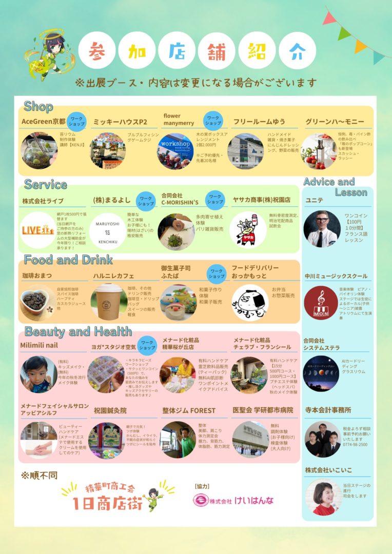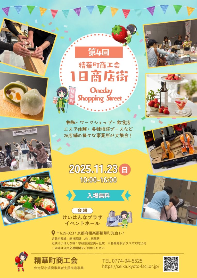 精華町商工会1日商店街 2025年11月19日 2025.11.23(日) 10:00ー16:00 けいはんなプラザイベントホールにて精華町一日商店街が催されます。 弊社も多肉植物寄せ植え・バリ雑貨販売で出店いたします。 皆様のお越しをお待ちしております。